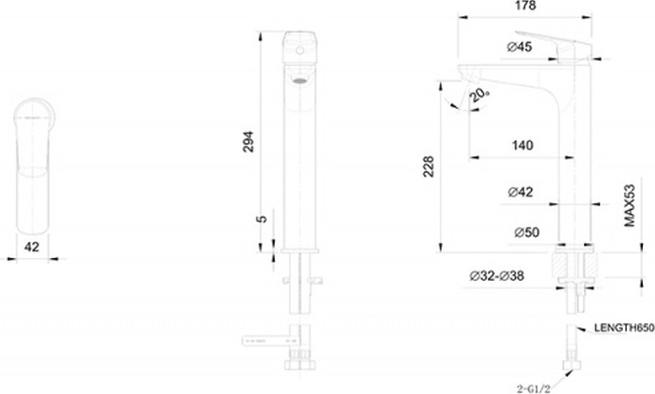 Характеристики смеситель для раковины высокий Bravat (F1429564CP-A-ENG)
