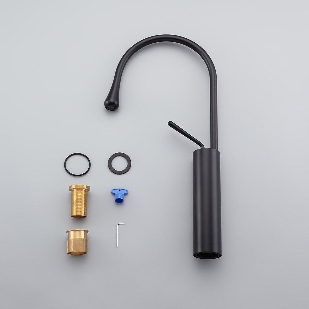 Смеситель для раковины высокий Bronze de Luxe Scandi 9015B с поворотным изливом, материал - латунь, цвет - черный матовый.