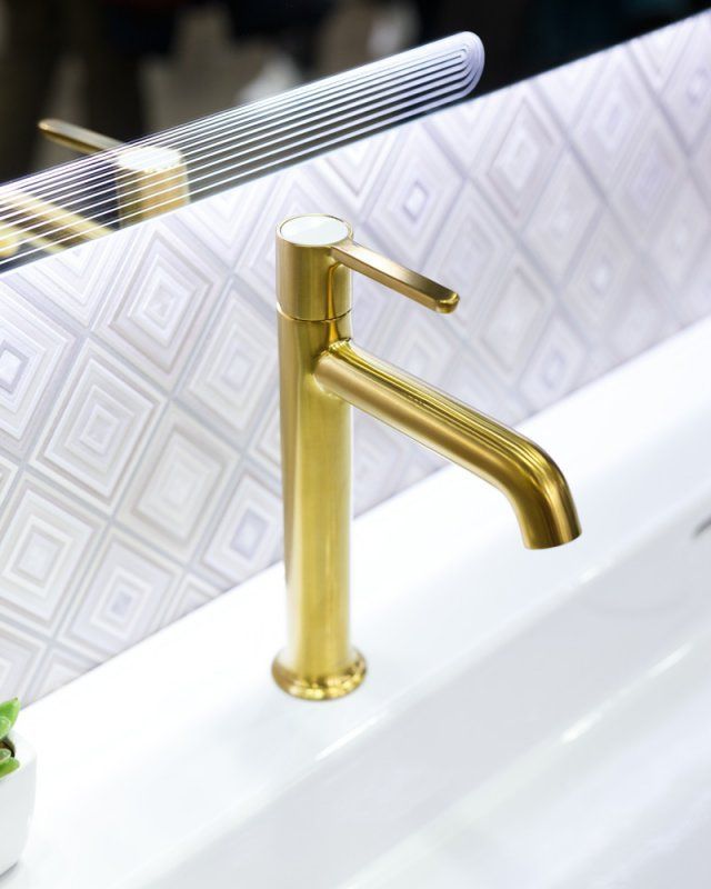Смеситель для раковины высокий Cezares ECO-LC-BORO-W0, материал - латунь, цвет - брашированное золото.