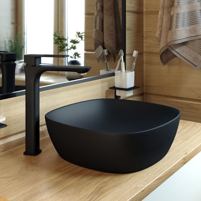 Смеситель для раковины высокий Iddis Slide SLIBL01i01, материал - латунь, цвет - черный матовый.