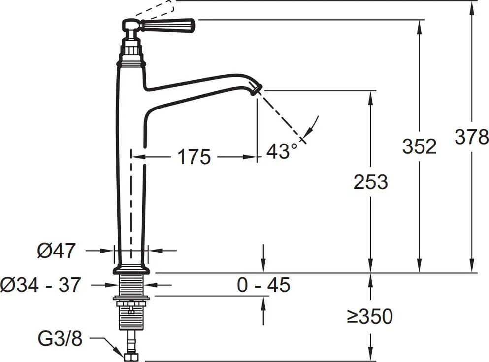 Описание смеситель для раковины высокий Jacob Delafon E24309-BGG