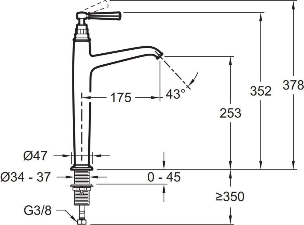 - Длина излива: 17.5 см