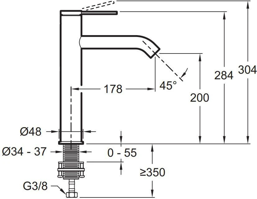 - Высота излива: 20 см