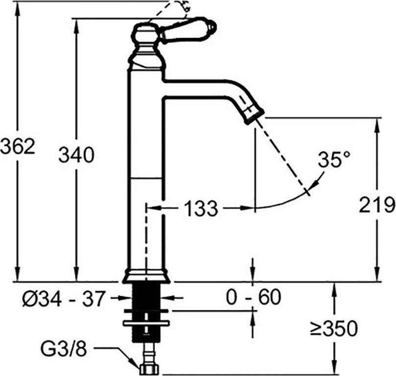 - Картридж 35 мм обеспечивает точную настройку температуры и потока воды