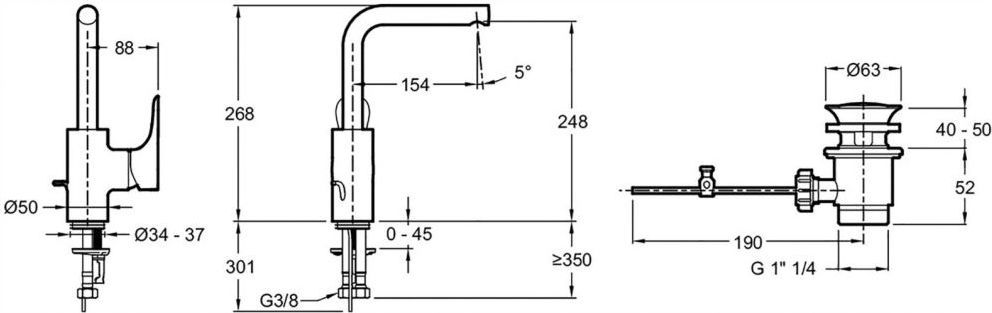 Характеристики смеситель для раковины высокий Jacob Delafon (E23719-CP)