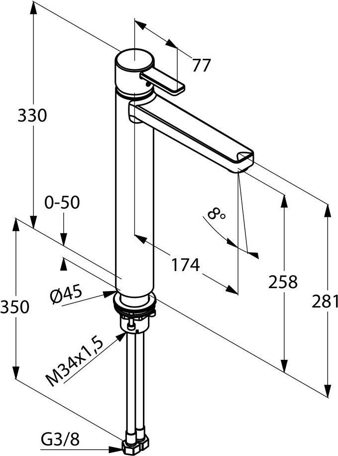 Характеристики смеситель для раковины высокий Kludi (382570575)