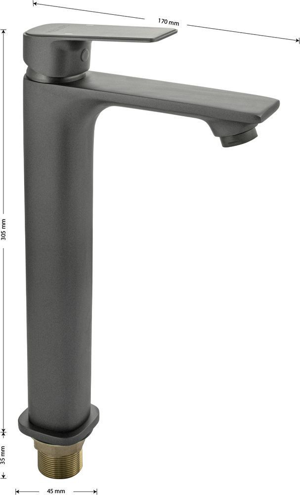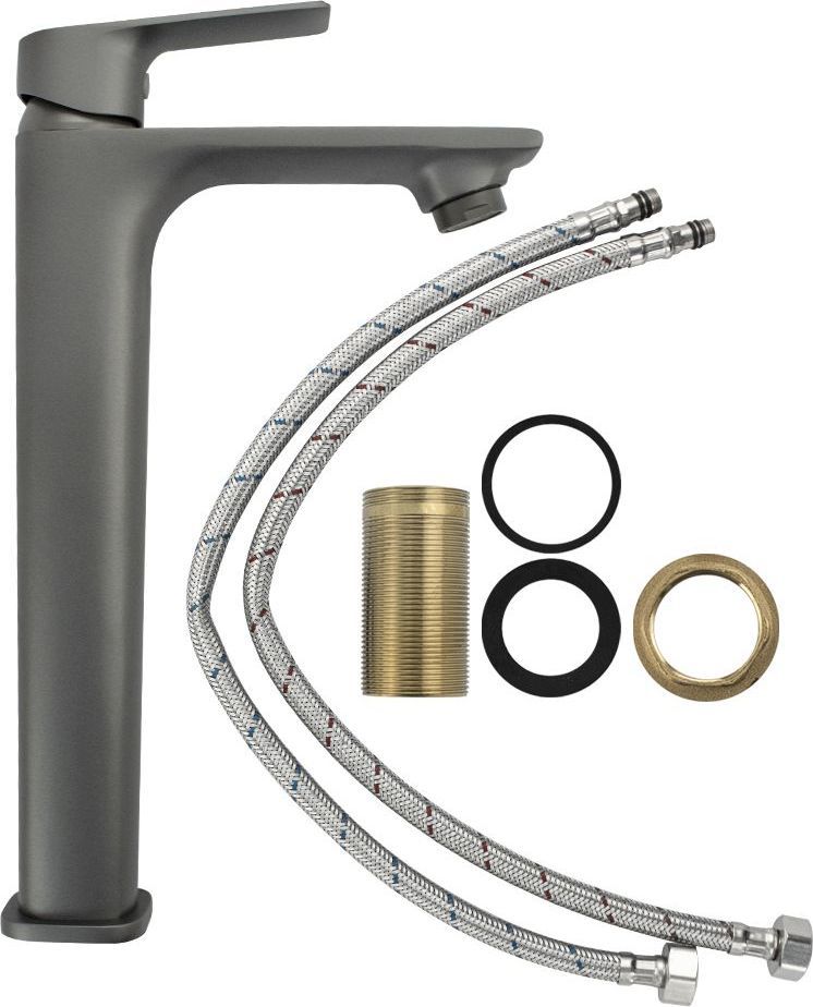 Смеситель для раковины высокий Magnus 8402, материал латунь, цвет графит.