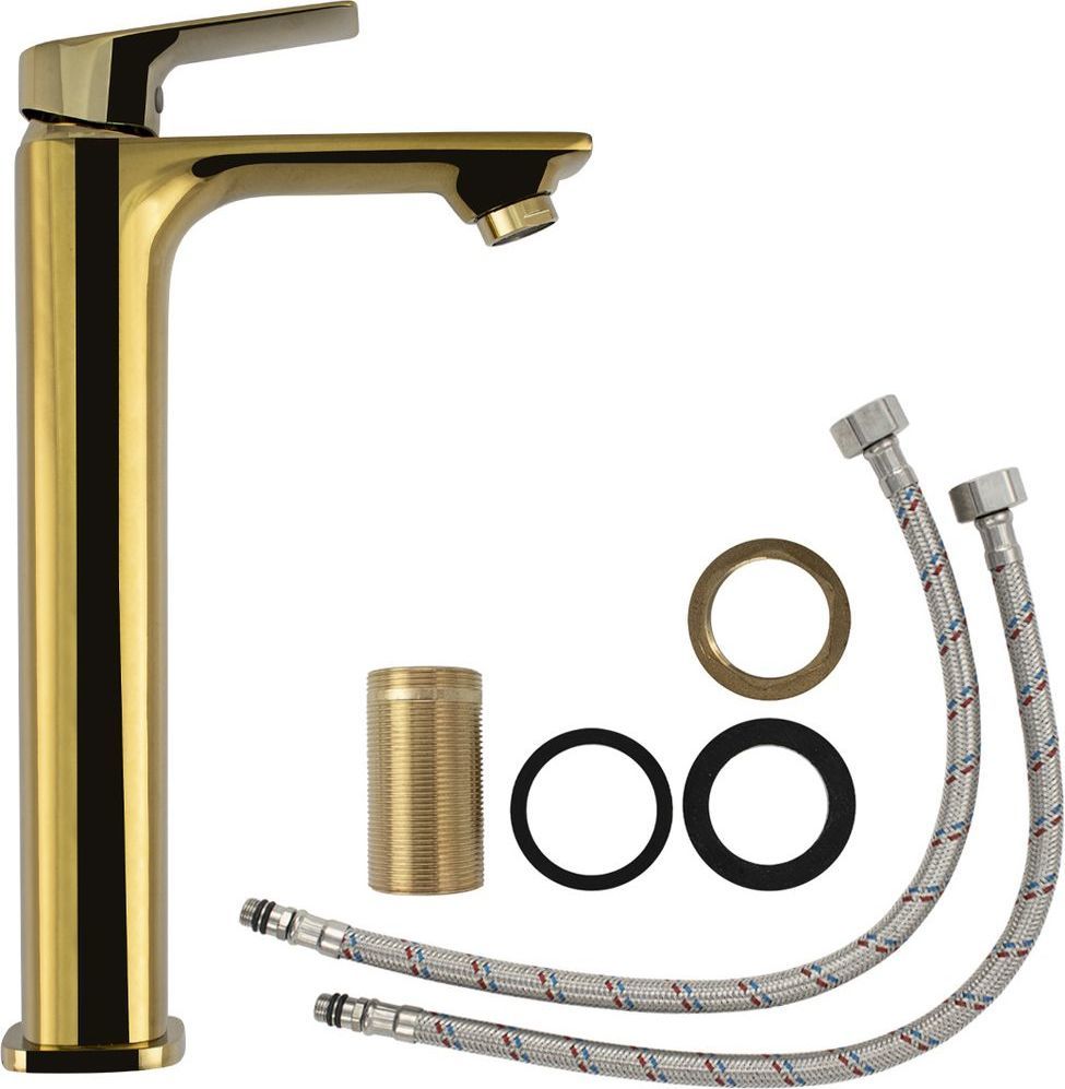 Смеситель для раковины высокий Magnus 8407, материал латунь, цвет золото.