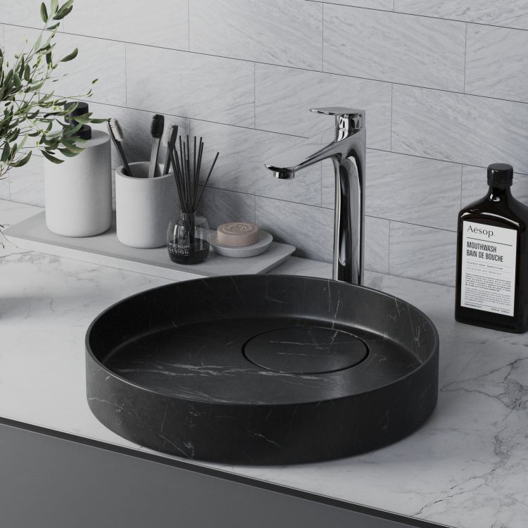- Увеличенная высота корпуса смесителя позволяет использовать его с накладными раковинами и раковинами-чашами.