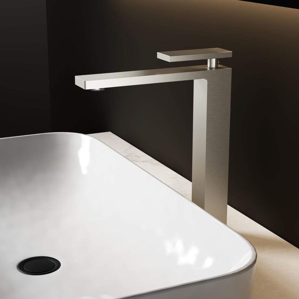 Смеситель для раковины высокий Vincea Dice VBF-2DS2BN, материал нержавеющая сталь, цвет сатин.