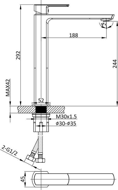 Характеристики смеситель для раковины высокий Vincea (VBF-1N2MB)