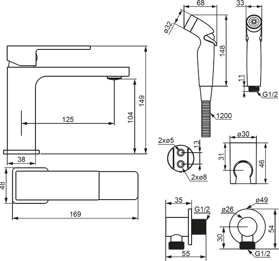 Описание смеситель для раковины с гигиеническим душем Damixa 530300300