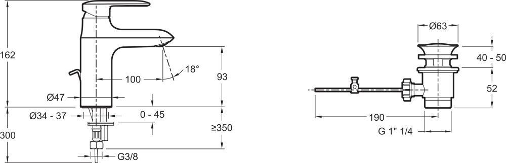 - Донный клапан в комплекте