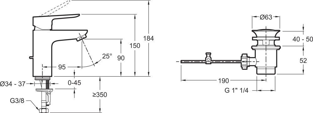 - Донный клапан в комплекте