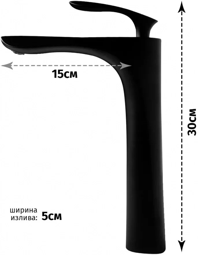 Смеситель для умывальника высокий Grocenberg GB3001BL, чёрный матовый