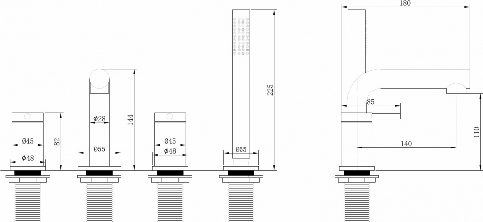 Смеситель для ванны Abber Emotion AF8813NG, на 4 отверстия, материал - латунь, цвет - никель.