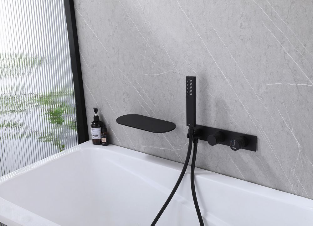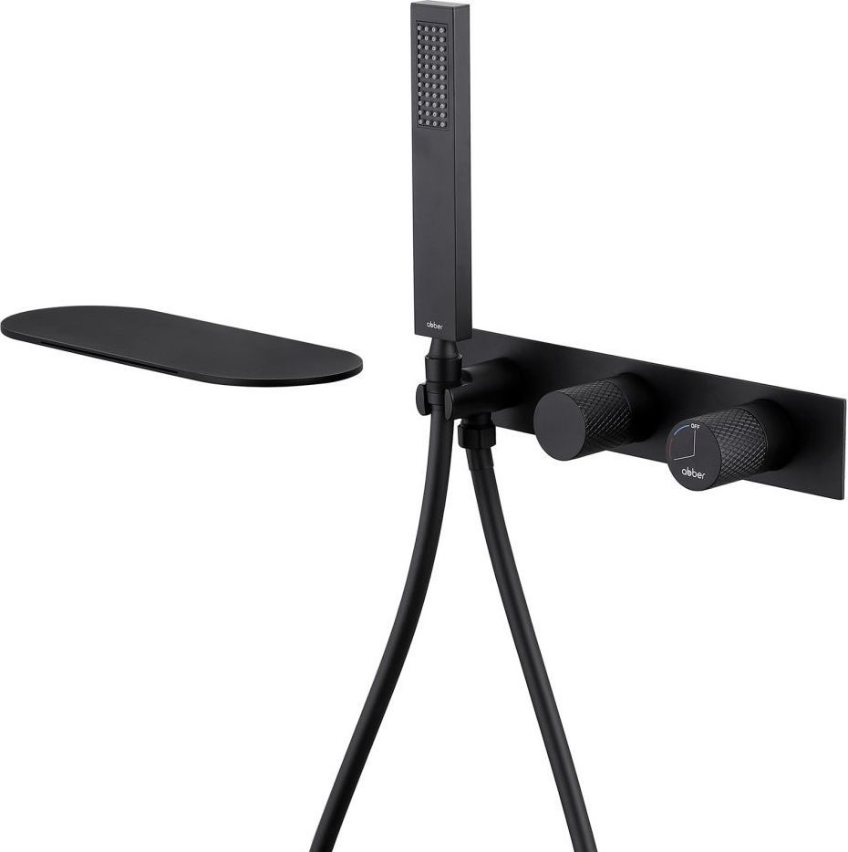 Смеситель для ванны Abber Rund AF8731B с душевым гарнитуром, материал латунь, цвет черный матовый.