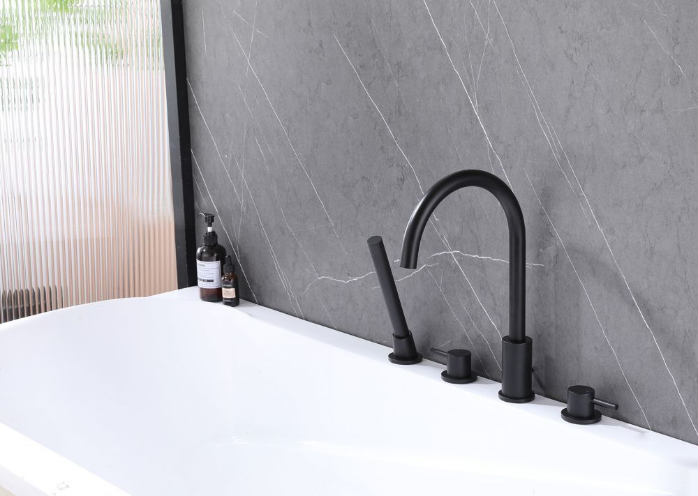Смеситель для ванны Abber Wasser Kreis AF8113B, на 4 отверстия, материал латунь, цвет чёрный матовый.