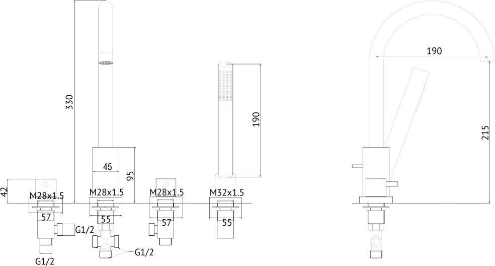 - смеситель на борт ванны