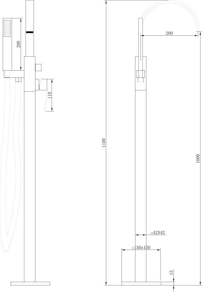 Смеситель для ванны Abber Wasserfall AF8615B с душевым гарнитуром и скрытой частью, материал - латунь, цвет - черный матовый.