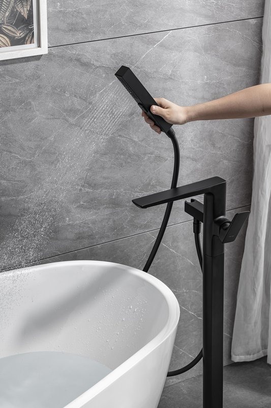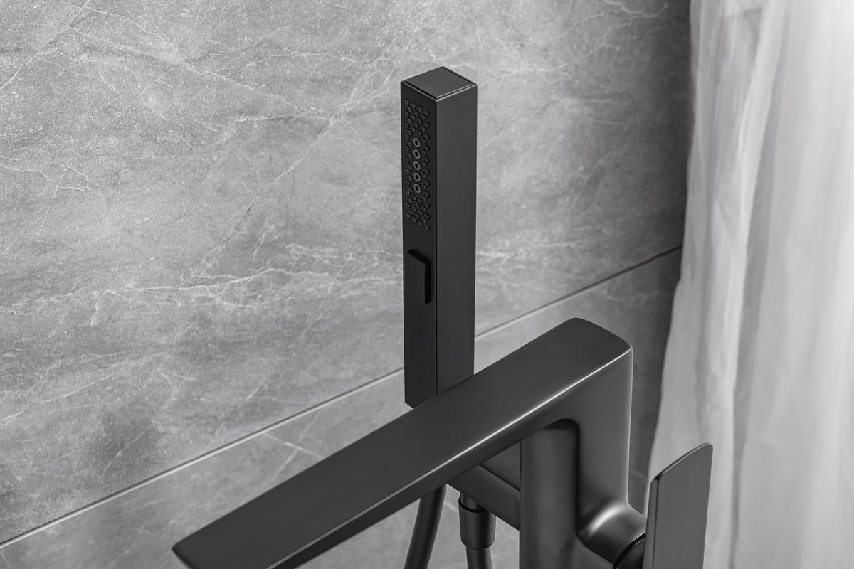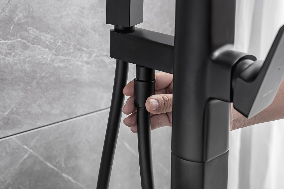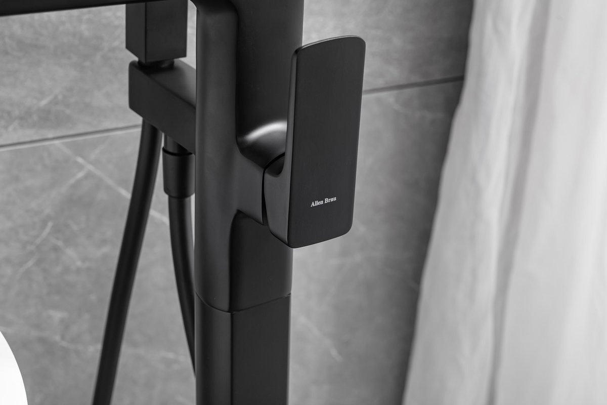 Смеситель для ванны Allen Brau Infinity 5.21009-31 с душевым гарнитуром и скрытой частью в комплекте, материал - латунь, цвет - чёрный матовый.