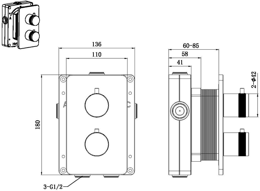 - Встраиваемый Термостатический смеситель на 2а потребителя воды, дополнительно приобретается оборудование на 2а потребителя (Пример: №1 верх.душ + №2 душевой набор с водорозеткой ИЛИ другие комбинации из 2х элементов)