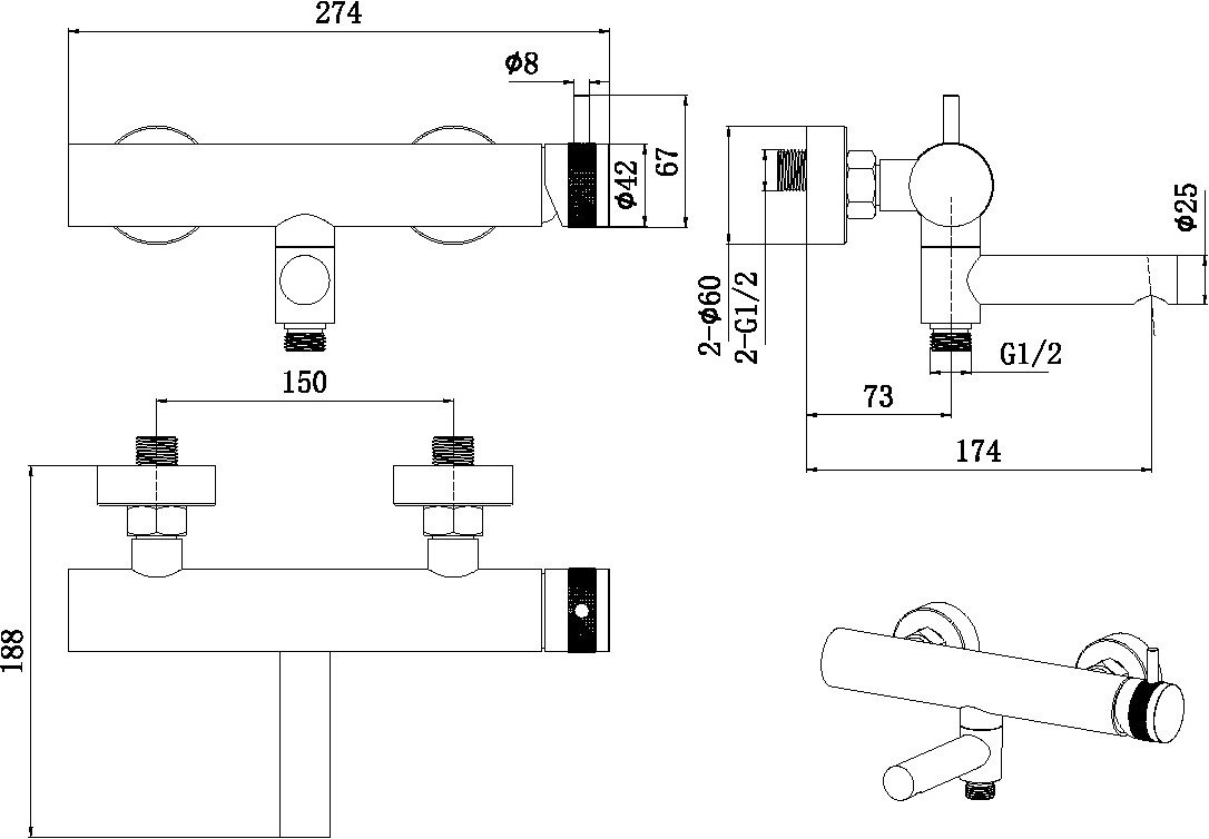 - Поворотный излив-дивертер (при закрытии излива в левую сторону вода переключается на душевой шланг)