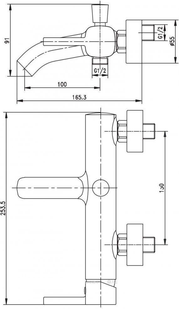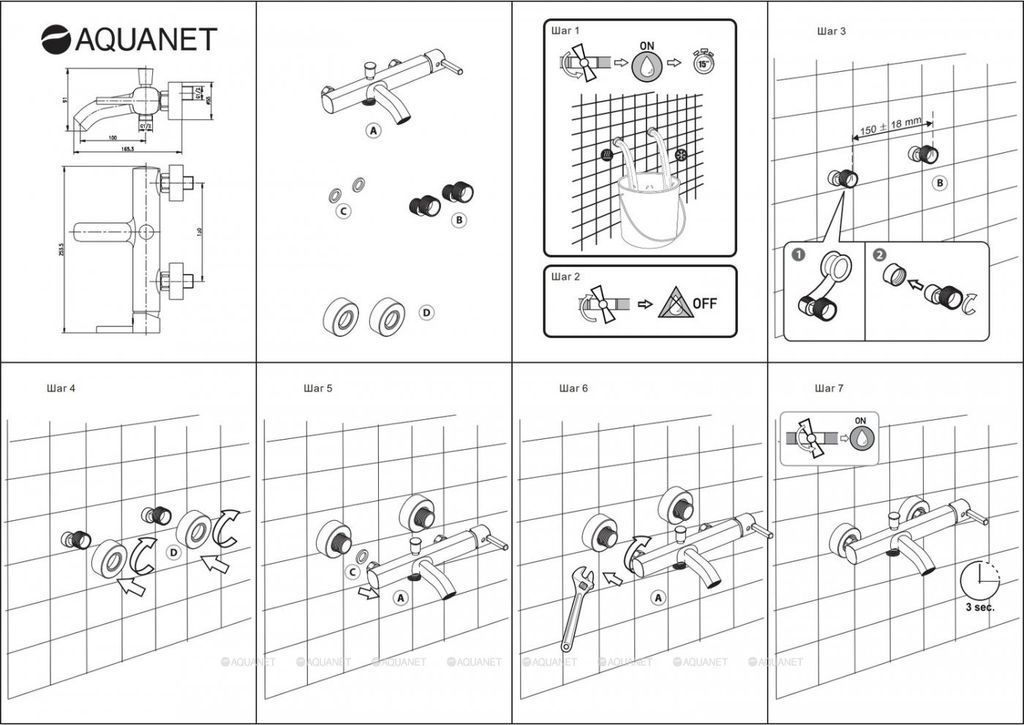 Смеситель для ванны Aquanet Minima AF130-20C, материал латунь, цвет хром.