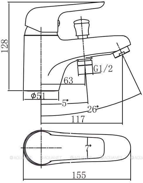 Характеристики смеситель на борт ванны Aquanet (216771)