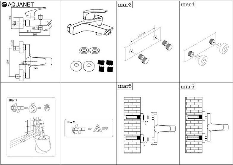 Смеситель для ванны Aquanet Static, материал латунь, цвет чёрный матовый.