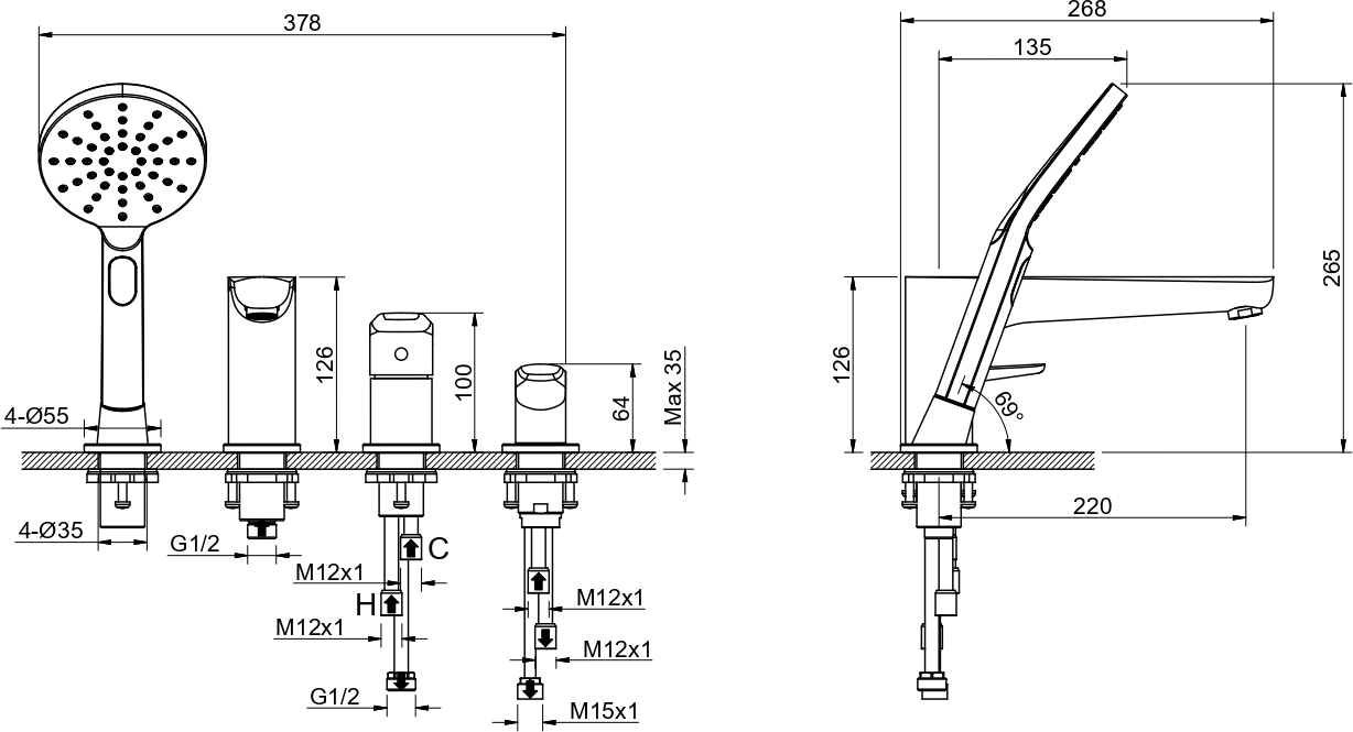 Характеристики смеситель на борт ванны Aquatek (AQ1148CR)