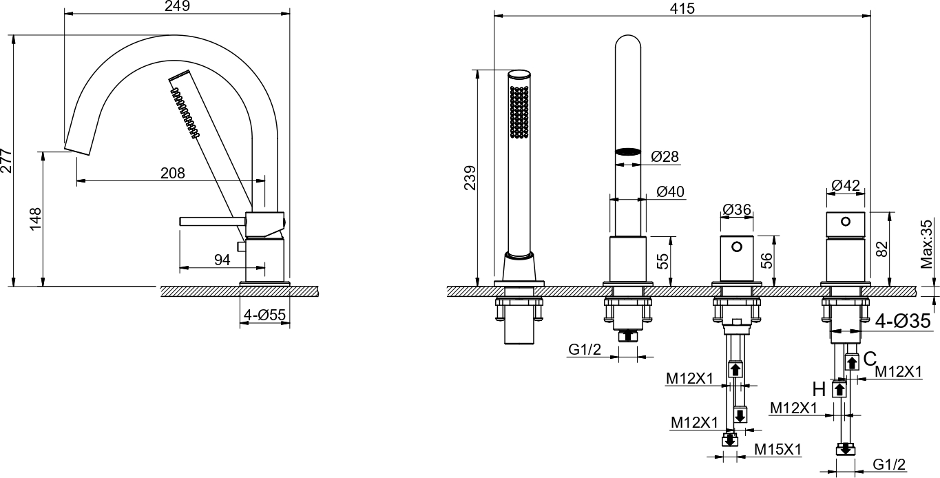 Характеристики смеситель на борт ванны Aquatek (AQ1348BGM)