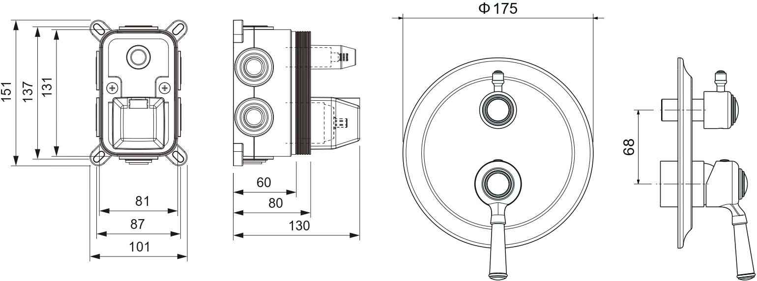 Смеситель для ванны Aquatek Классик AQ1547CR (со скрытой частью)