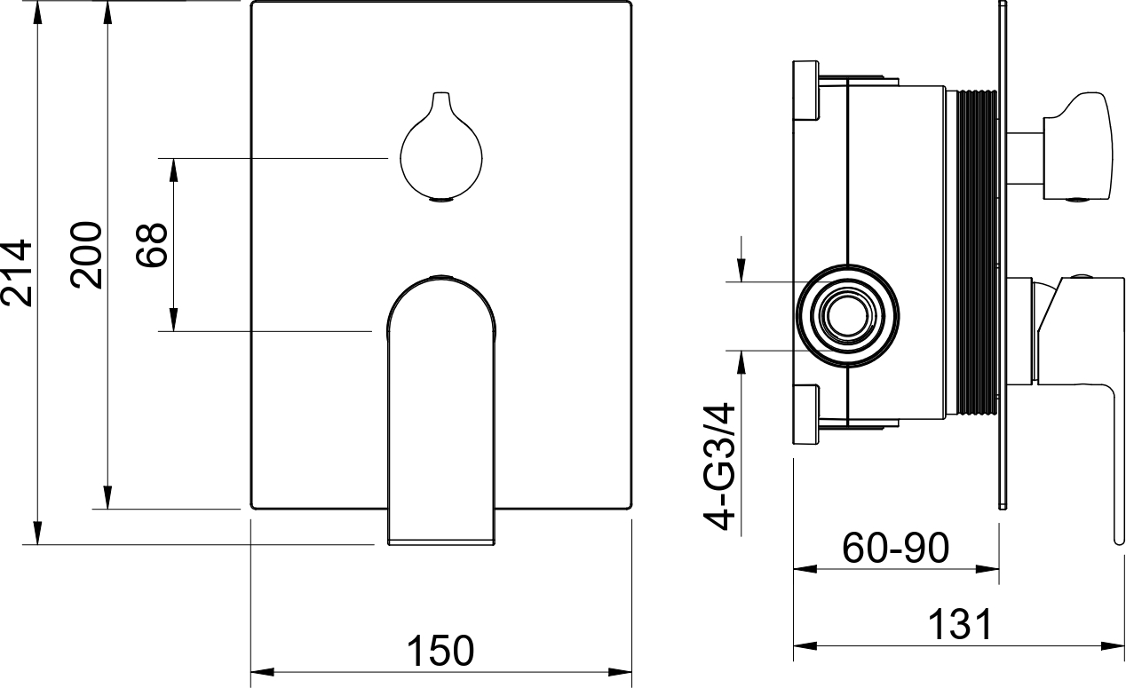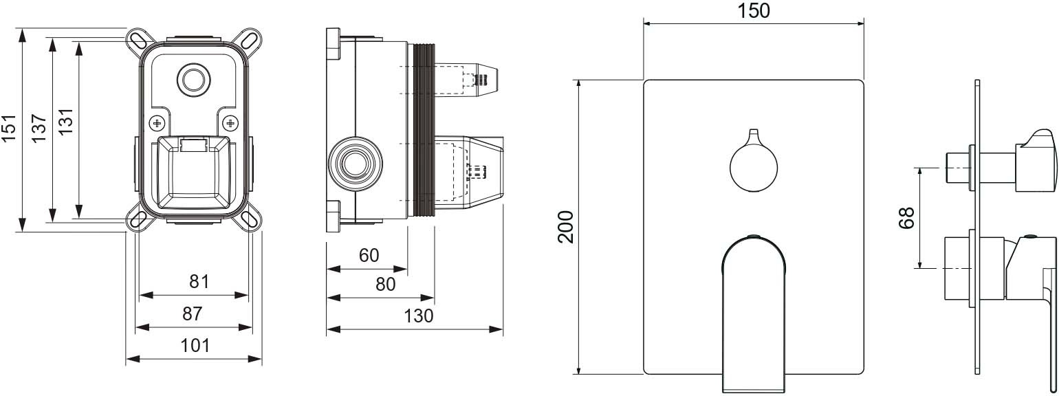 Смеситель для ванны Aquatek Лира AQ1446CR (со скрытой частью)