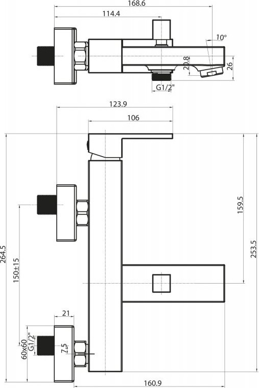 - Длина излива: 16,9 см