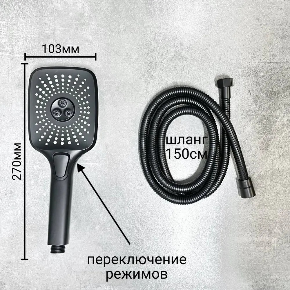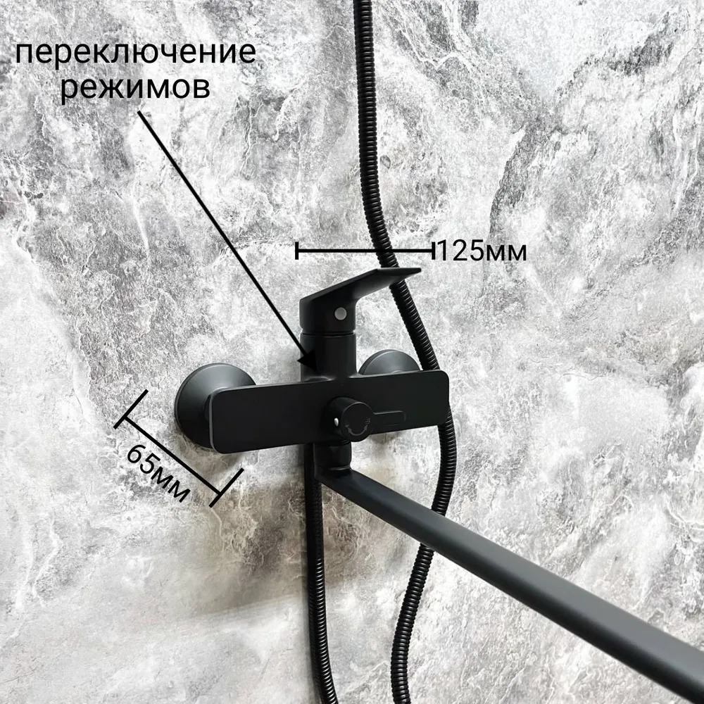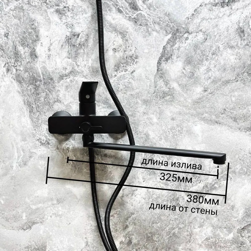 Смеситель для ванны Belz B22533-7 с длинным изливом и душевым гарнитуром, материал латунь, цвет чёрный матовый.