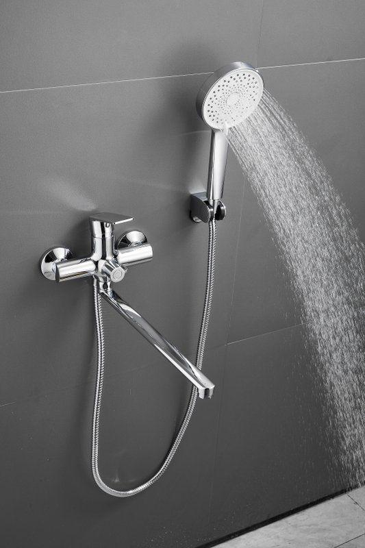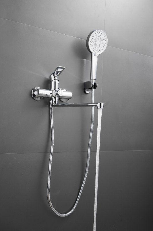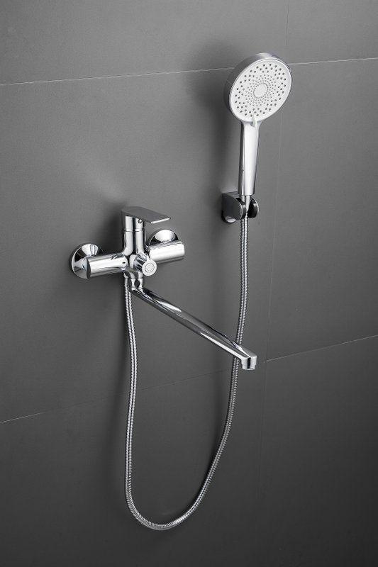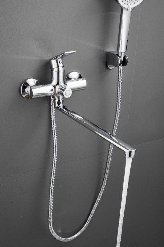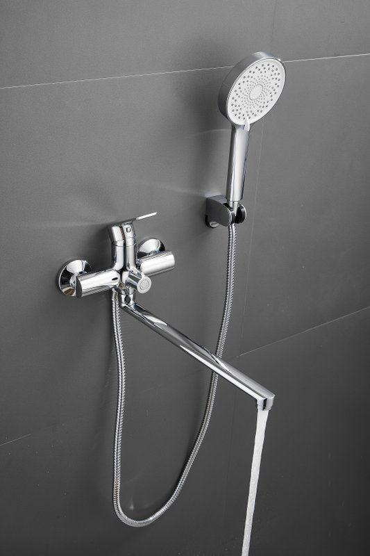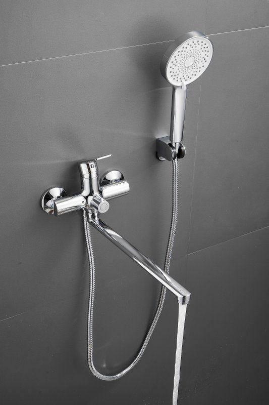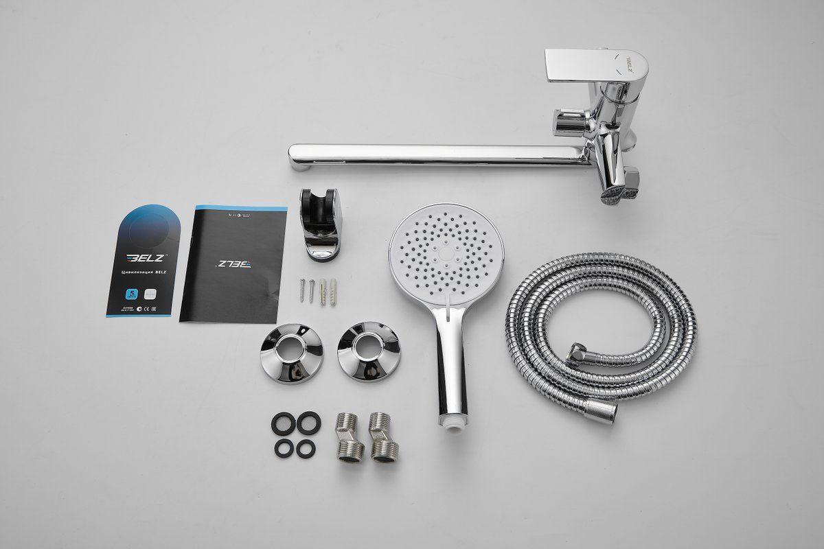 Смеситель для ванны Belz B22679 с длинным изливом и душевым гарнитуром, материал латунь, цвет хром.