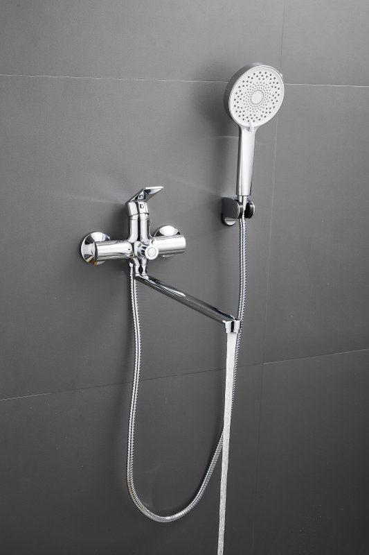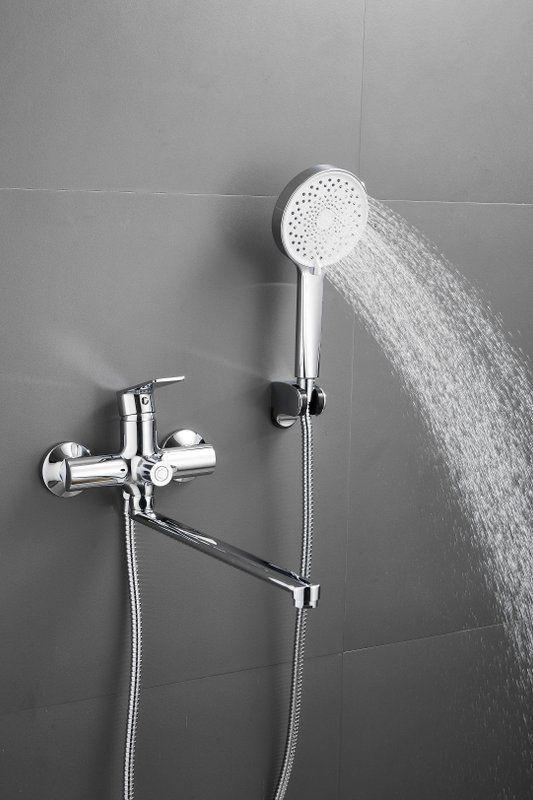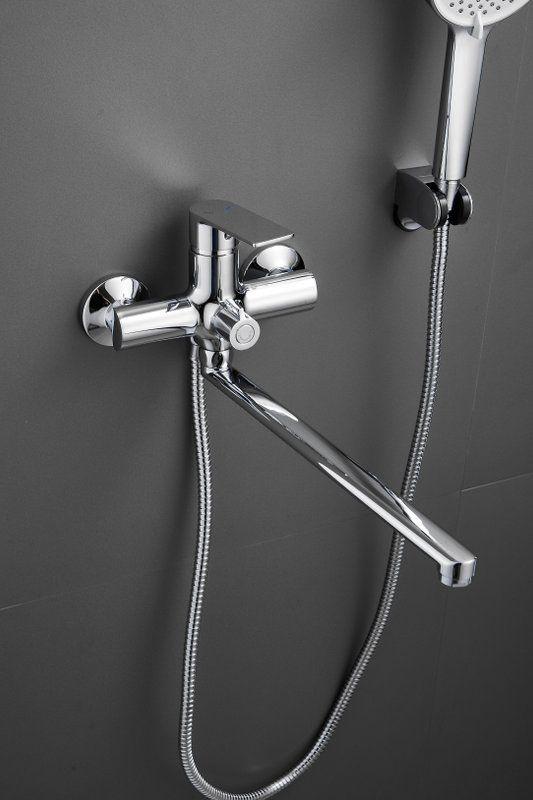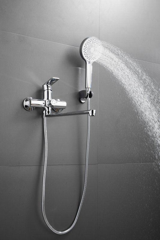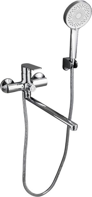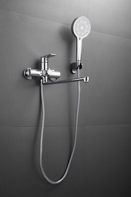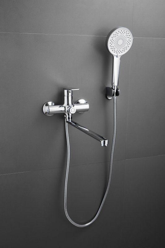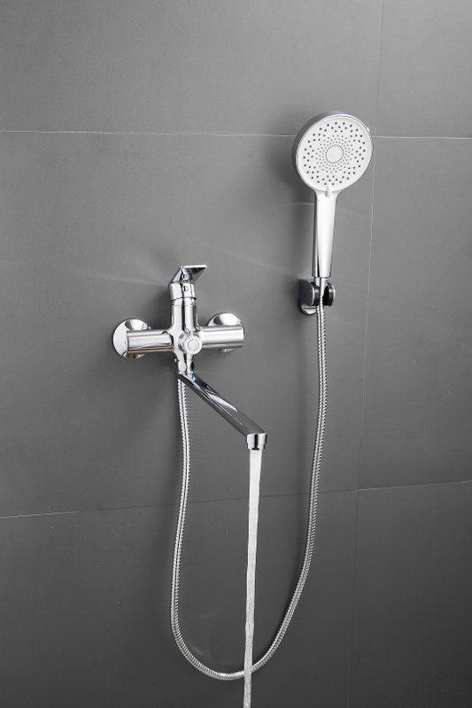 Смеситель для ванны Belz B22679 с длинным изливом и душевым гарнитуром, материал латунь, цвет хром.