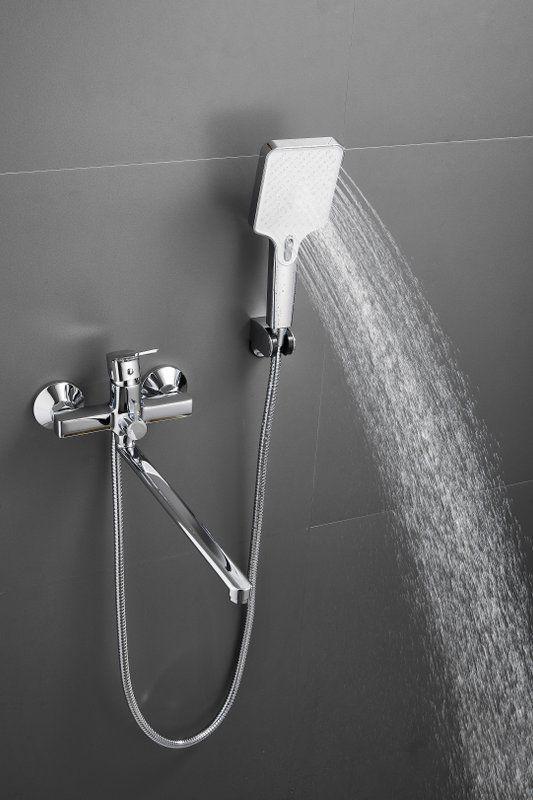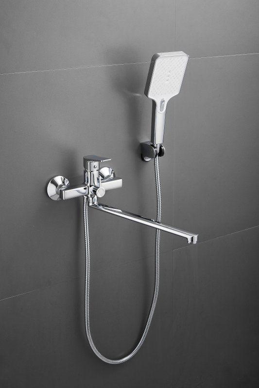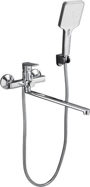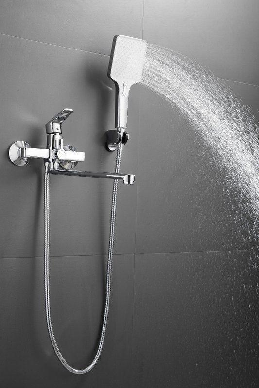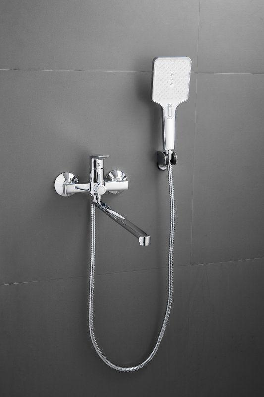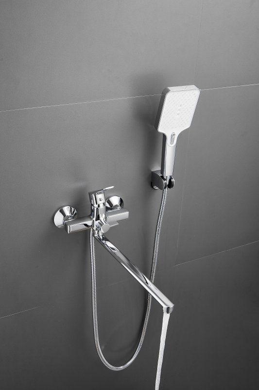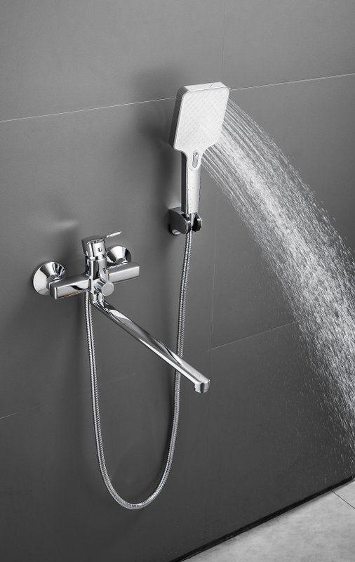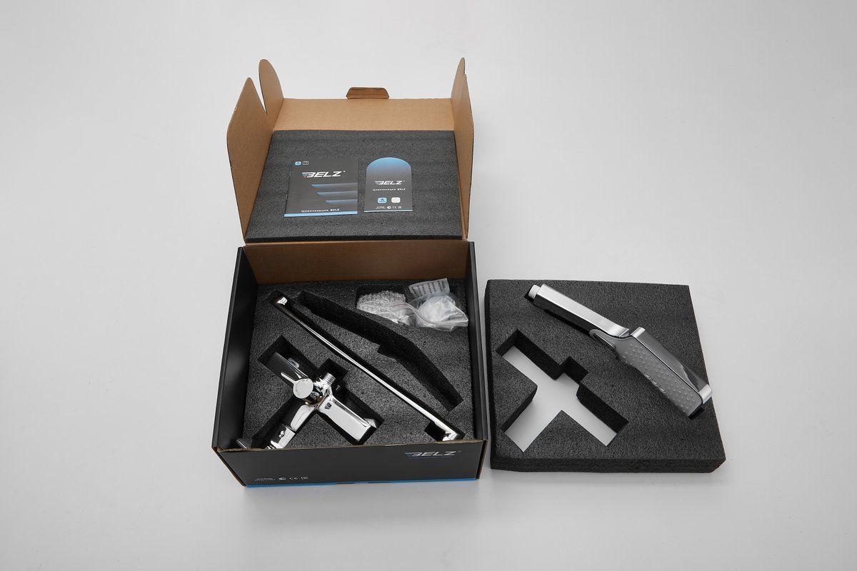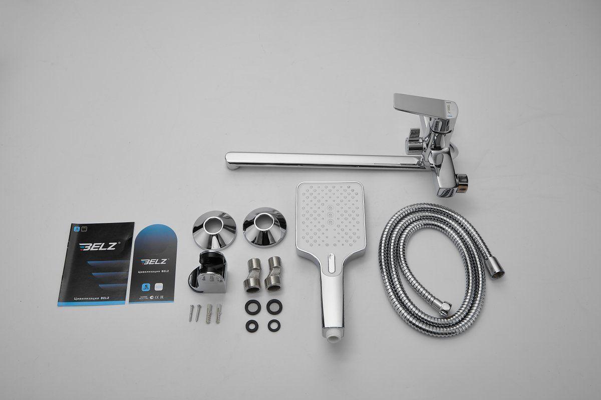 Смеситель для ванны Belz B22715 с длинным изливом и душевым гарнитуром, материал латунь, цвет хром.