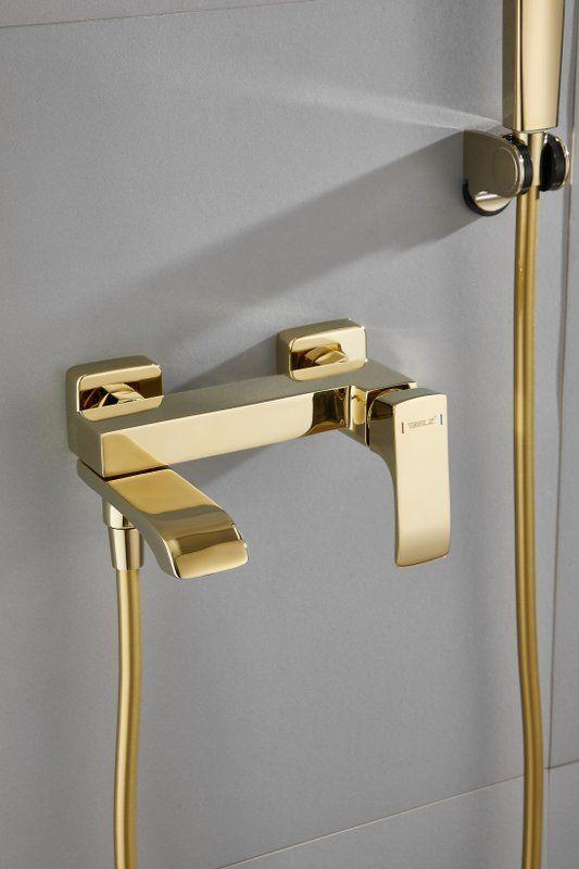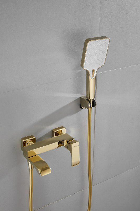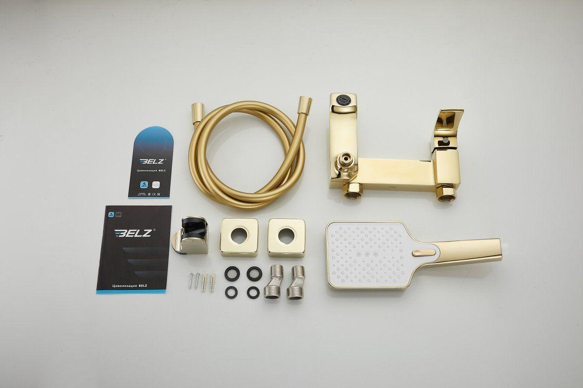 Смеситель для ванны Belz B60507-5 с душевым гарнитуром, материал латунь, цвет золото.