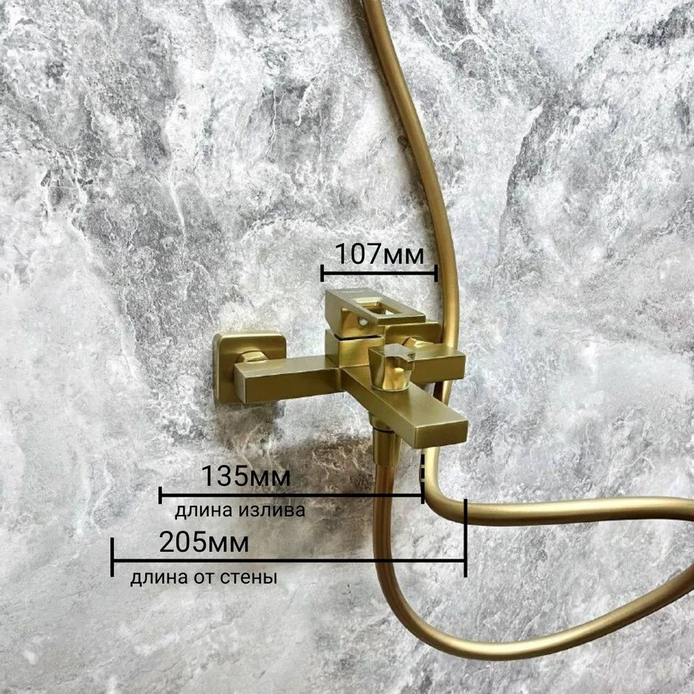 Смеситель для ванны Belz B60658-5 с душевым гарнитуром, материал латунь, цвет золото.
