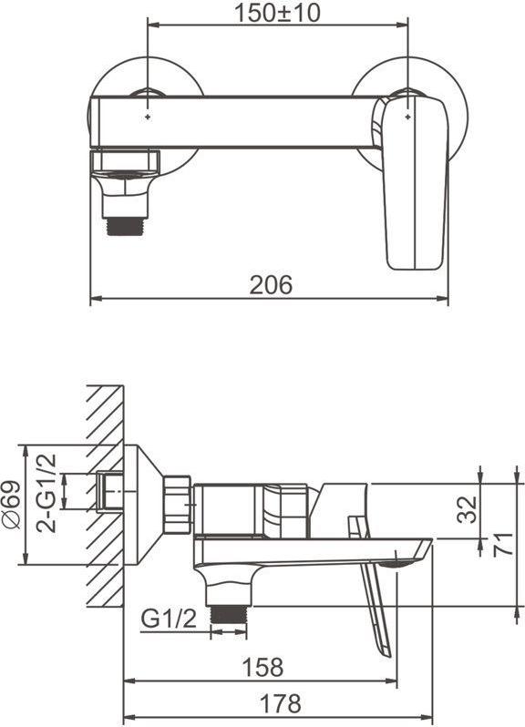 Смеситель для ванны Belz B60715 с душевым гарнитуром, материал латунь, цвет хром.