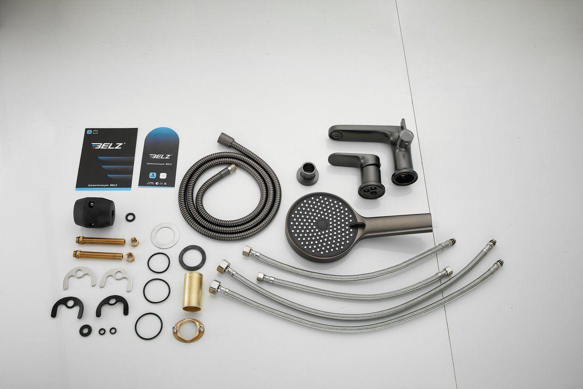 Смеситель для ванны Belz B66713-3 с душевым гарнитуром, материал латунь, цвет оружейная сталь.