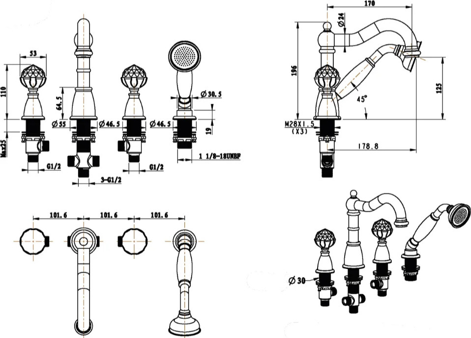 Характеристики смеситель на борт ванны Boheme (392)
