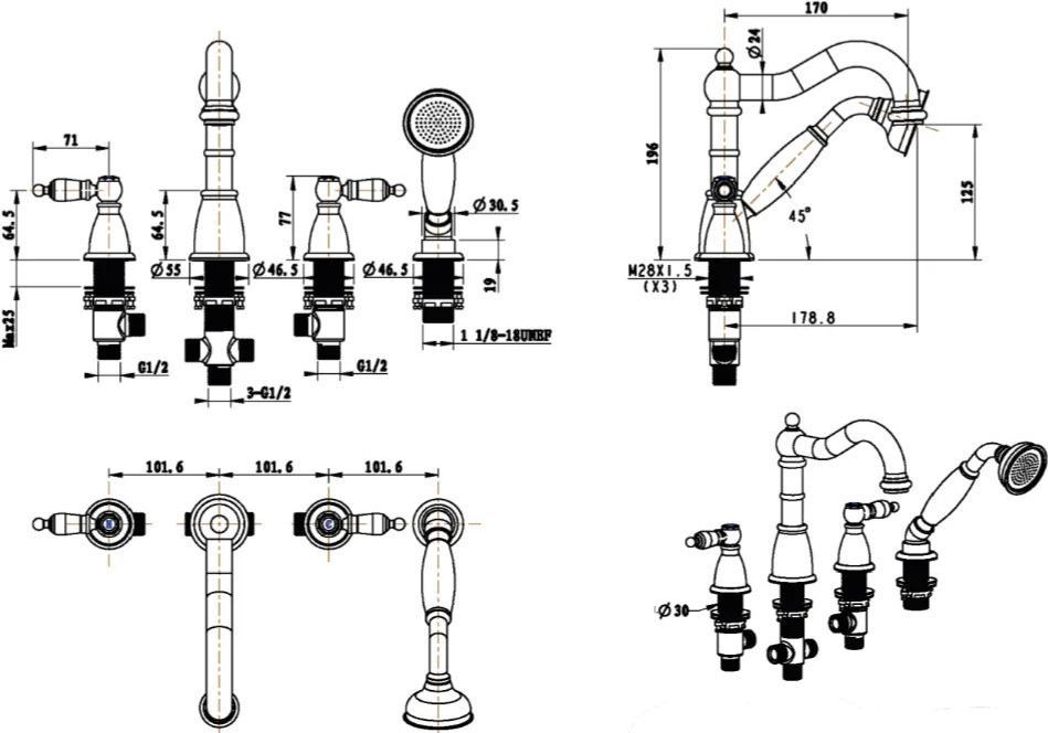 Характеристики смеситель на борт ванны Boheme (394)