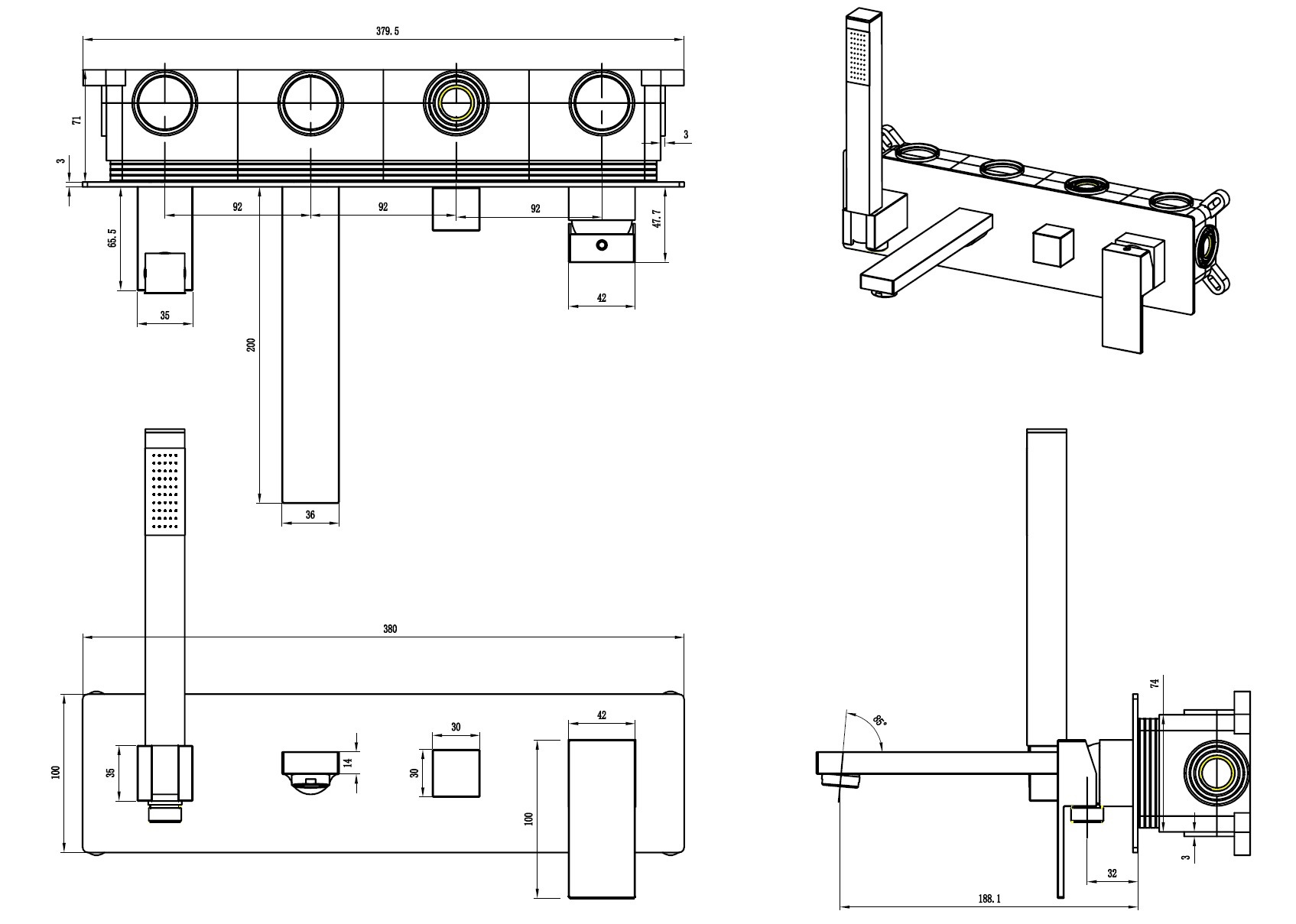 Смеситель для ванны Boheme Qubic 474-2-BRB, скрытая часть в комплекте, материал латунь, цвет брашированная бронза.