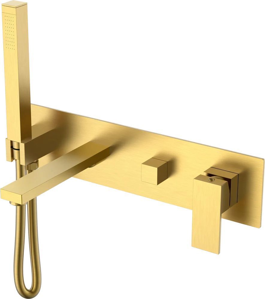 Смеситель для ванны Boheme Qubic 474-2 с душевым гарнитуром и со скрытой частью, материал латунь, цвет matt gold