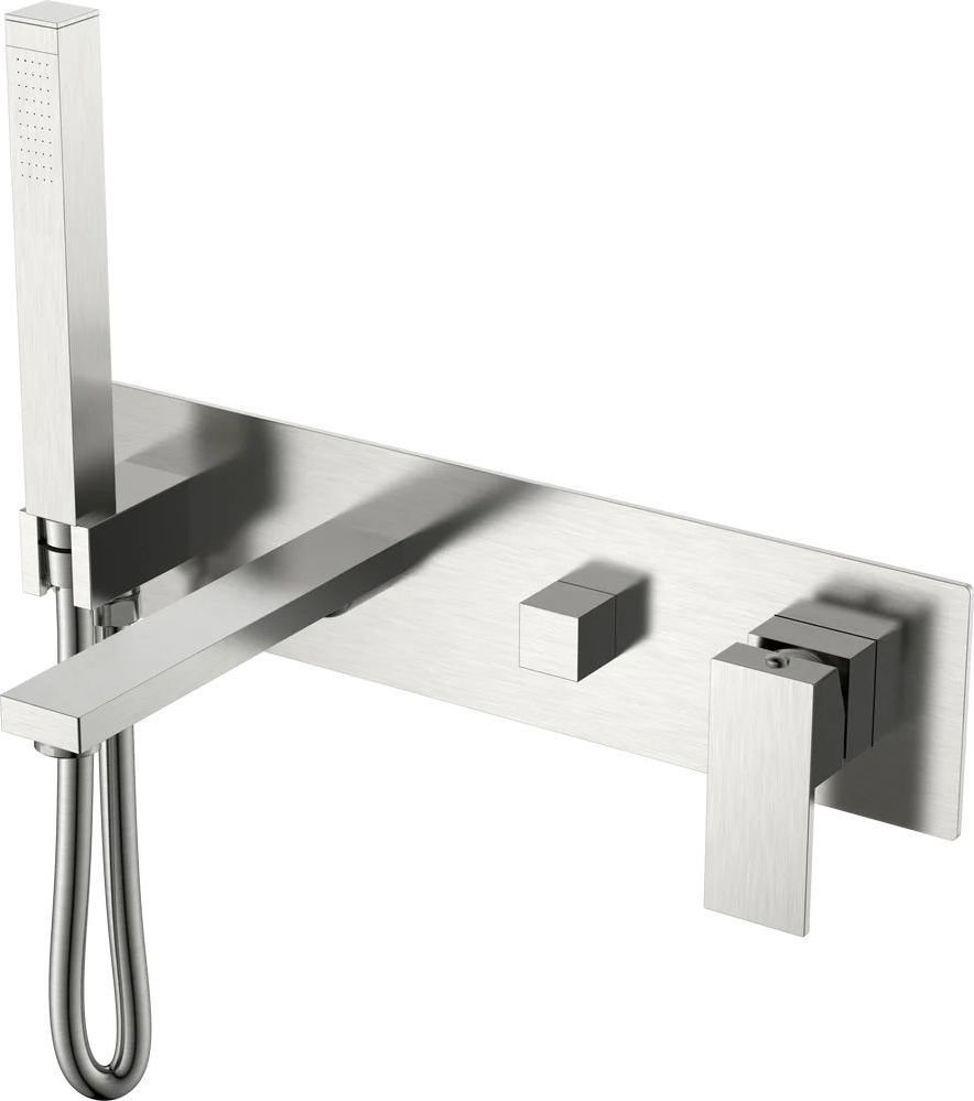 Смеситель для ванны Boheme Qubic 474-2 с душевым гарнитуром и со скрытой частью, материал латунь, цвет nickel brush