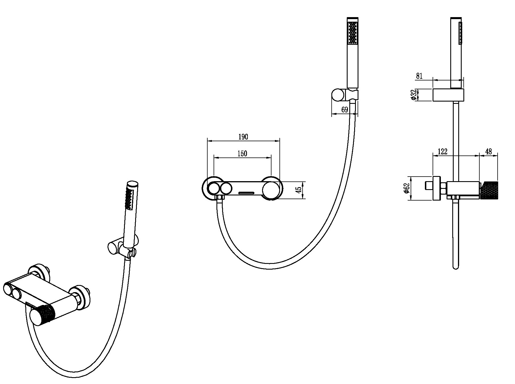 Смеситель для ванны Boheme Stick 123-NB.4 с душевым гарнитуром, материал латунь, цвет никель.