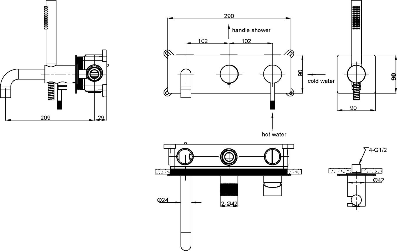 Характеристики смеситель для ванны Boheme (464-3-MW)
